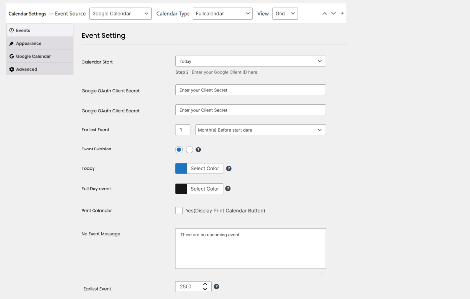 The free Simple Calendar plugin displays your Google Calendar events in a basic default view. FullCalendar Extended upgrades with interactive month, week, and day views, adjustable calendar height, display language options, event color customization, and faster navigation, all powered by real-time Google Calendar synchronization.